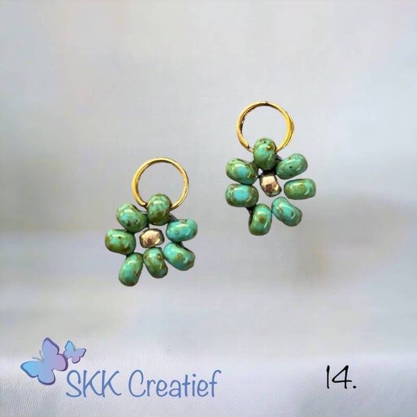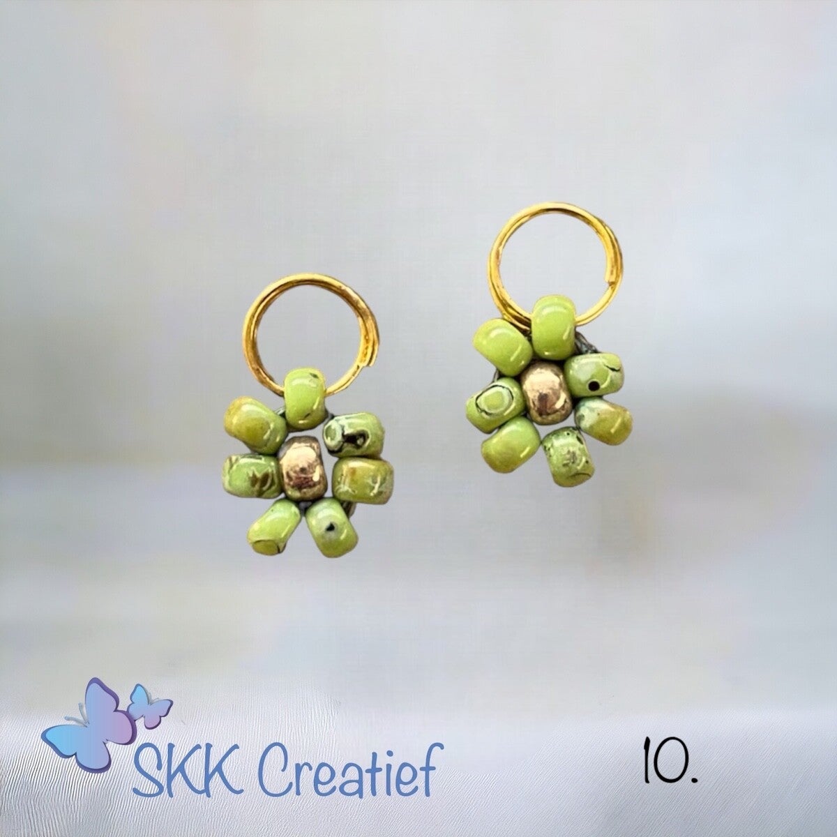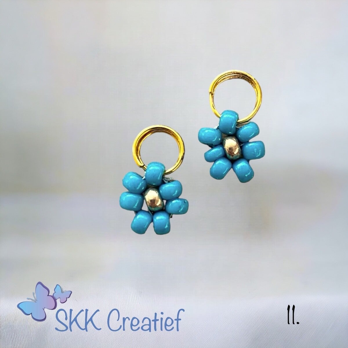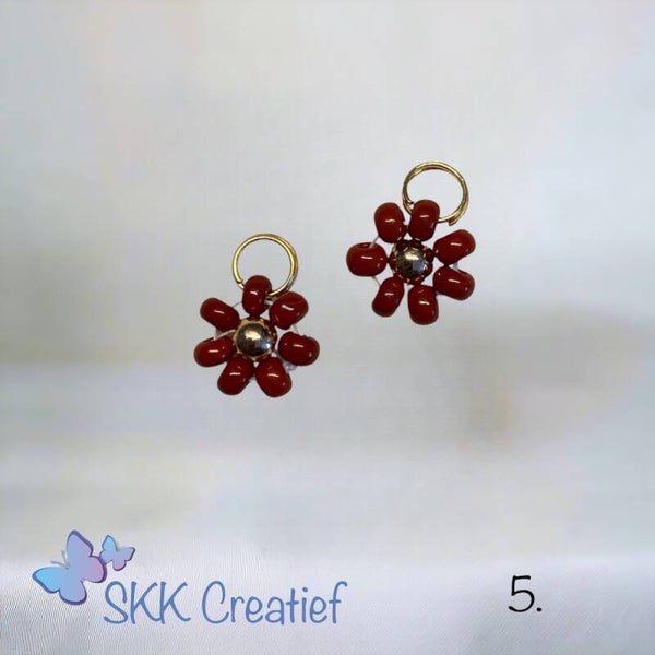 De bedel bloemen zijn gemaakt met Miyuki 6/0 rocailles in verschillende kleuren die je kan gebruiken voor b.v. een paar leuke gouden oorringen.