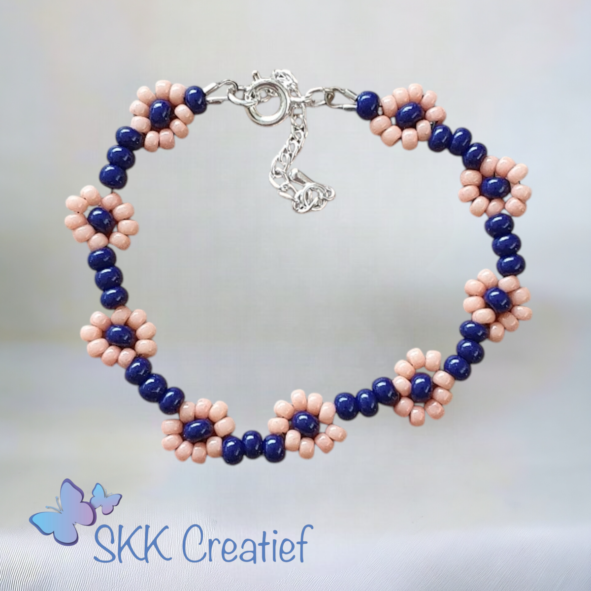 De armbanden zijn gemaakt met Miyuki 8/0 rocailles in verschillende kleuren. De armband is 15-18 cm lang en afgewerkt met een karabijn sluiting. M7 is in de kleur wit met goud en 14cm!