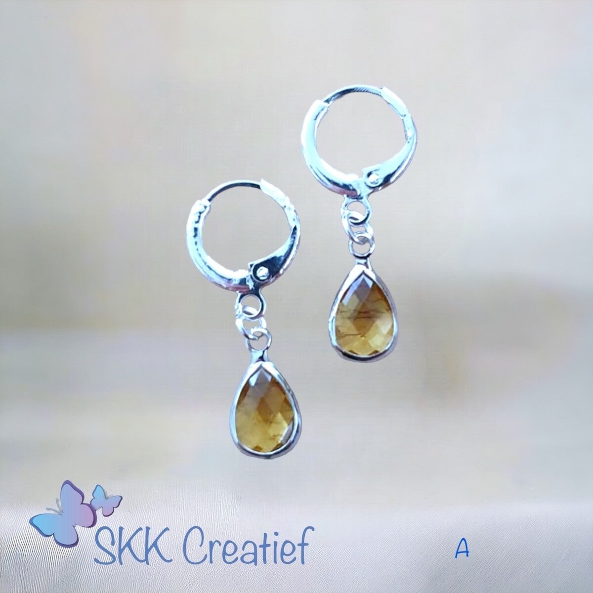 Zilveren (925) oorbellen met licht gele kristallen hanger.