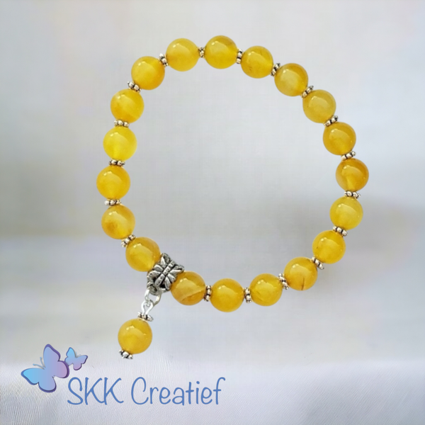 Een fijne zilveren (925) ketting met een hanger met gele agaat. Lengte 45 cm en afgewerkt met een karabijn sluiting.
