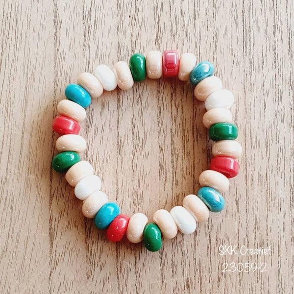 De armband is gemaakt met mooi glanzende keramiek rondellen. Afgewisseld met zilveren rondellen. Er zijn verschillende uitvoeringen. Verschillende maten, maak je keuze hieruit.